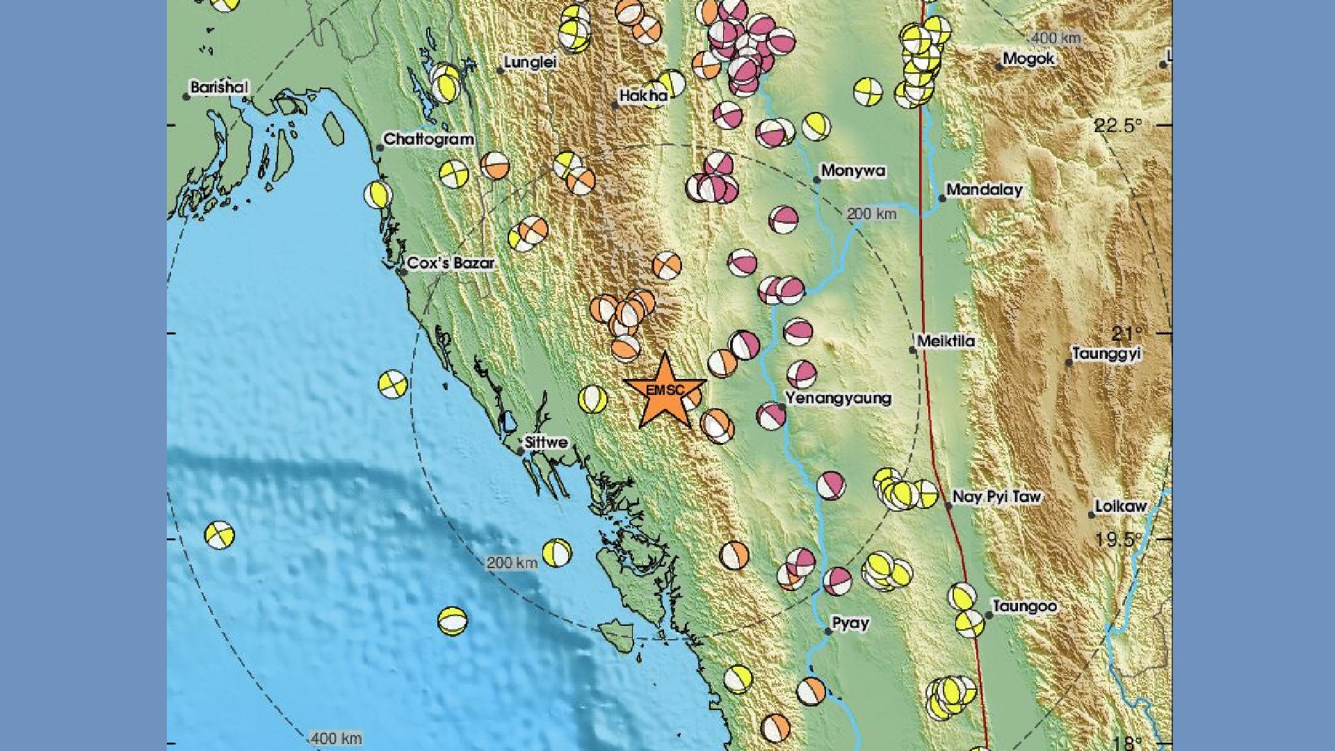 রাতের ভূমিকম্পটি কক্সবাজার শহর থেকে দক্ষিণ-পূর্ব দিকে ২০০ কিলোমিটারের কম দূরত্বে হয়েছে। এ কারণে বাংলাদেশে অনেক ভারি ভূ-কম্পন অনুভূত হয়েছে বলেও জানান এই আবহাওয়া গবেষক।